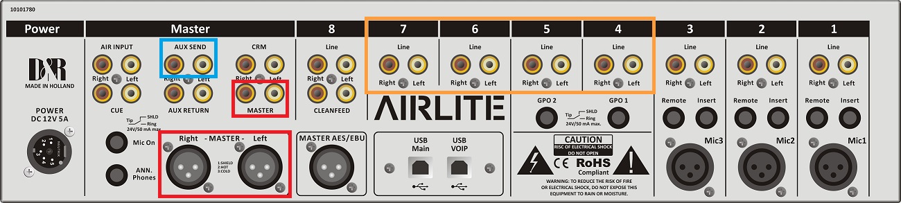 On this front you see the inputs and outputs highlighted with colors to easily recognize them.