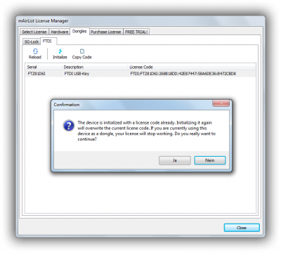You will see a warning message, telling you that you are going to overwrite the existing license code: