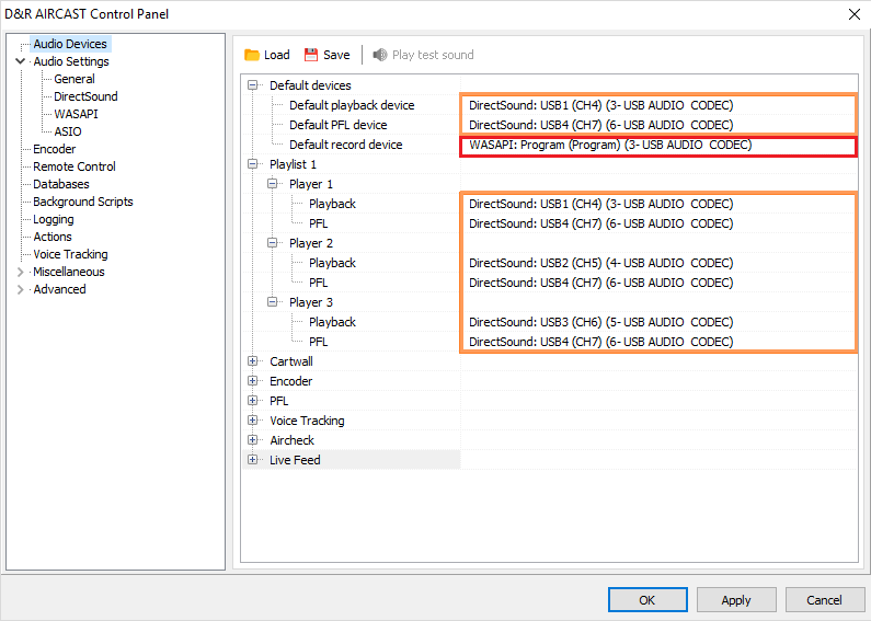 - The standard playout goes to Channel 1, the standard PFL goes to Channel 4, the standard recording device is Program (Non Stop)