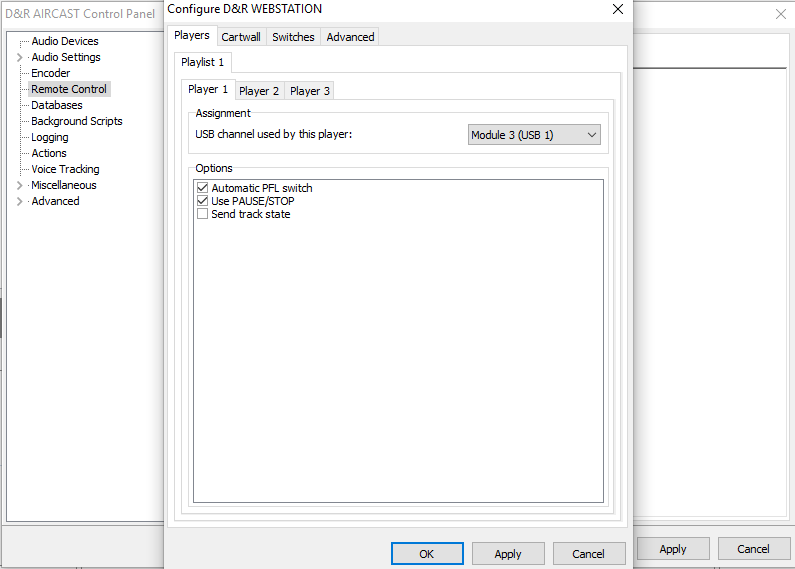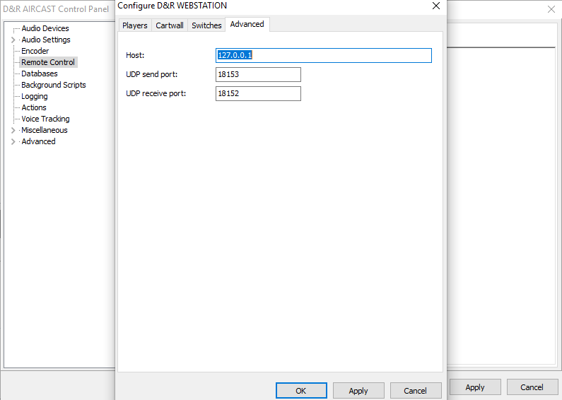 To control Aircast with you’re D&R mixer you’ll have to add the Remote Control function of the specific mixer.