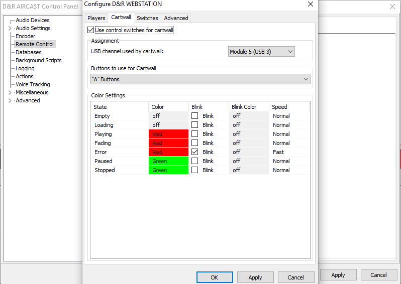 For the other switches that arent used for the Cartwall players we can configure different fucntions.