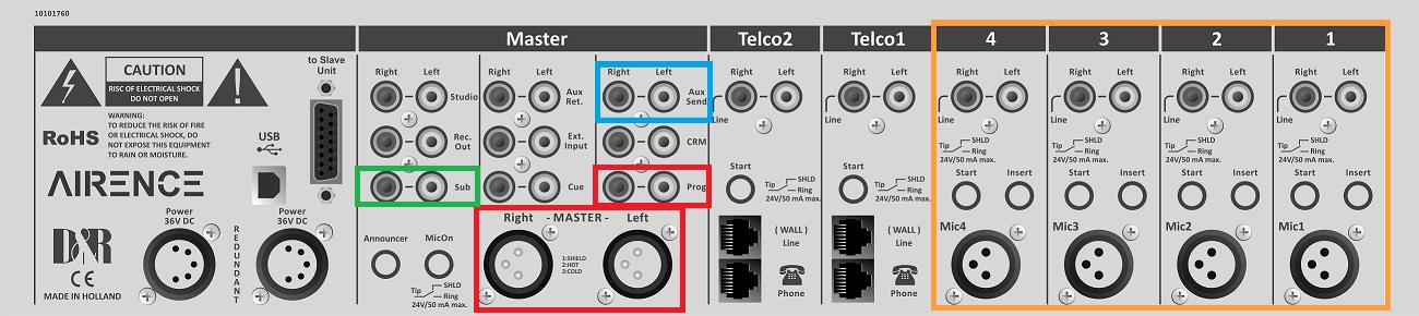 On this front and backplane you see the four USB inputs channels of the Airlite in Orange.