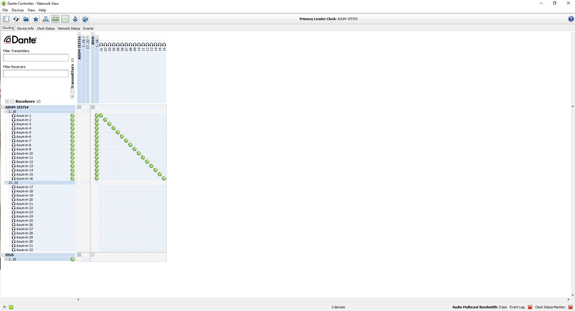First it is important that the AXUM dante module is in Sync showing a green square.