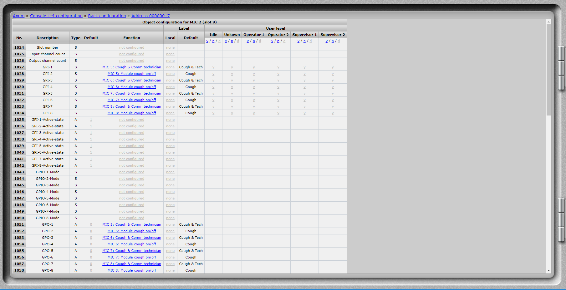 Setting 1027 - 1034 are the GPI settings and react to the buttons of the Studio Remote.