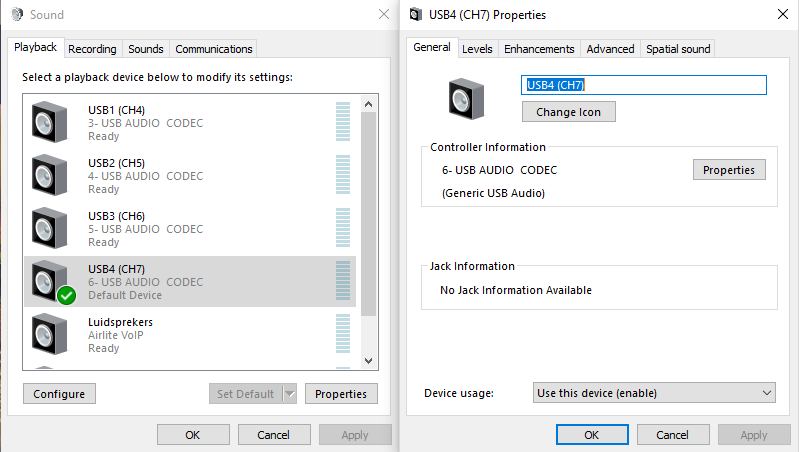 You can rename them after double clicking on the USB Audio Codec.