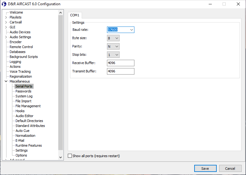 To use the Fader starts of an Airlab you'll also need to set the Serial port settings to the right Baud rate.
