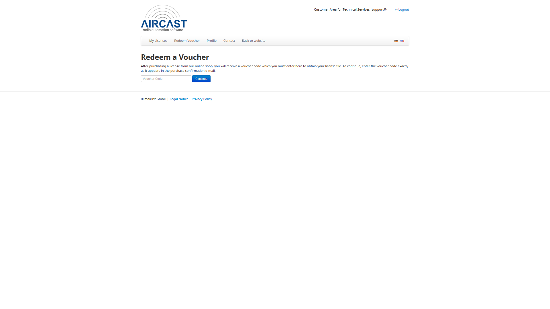Then you'll have to go to redeem voucher and enter the code on the voucher you received when buying Aircast.