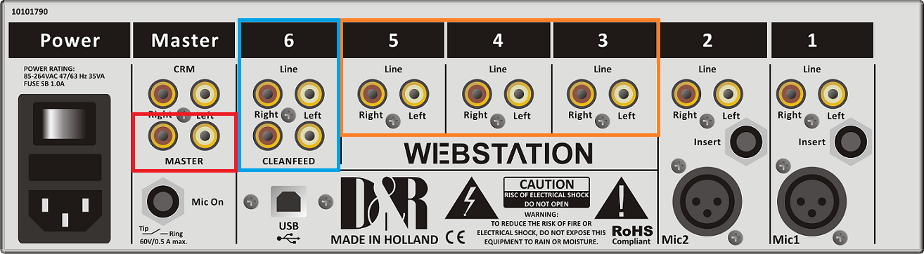 On this front and backplane you see the three inputs channels of the Webstation in Orange.