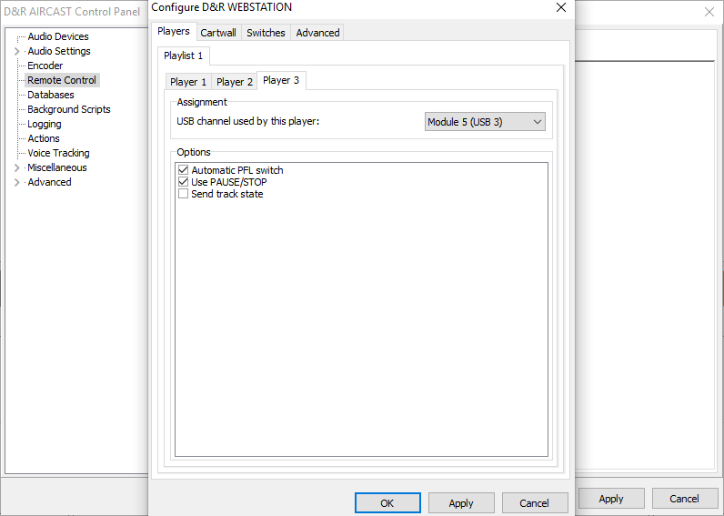 To control Aircast with you’re D&R mixer you’ll have to add the Remote Control function of the specific mixer.