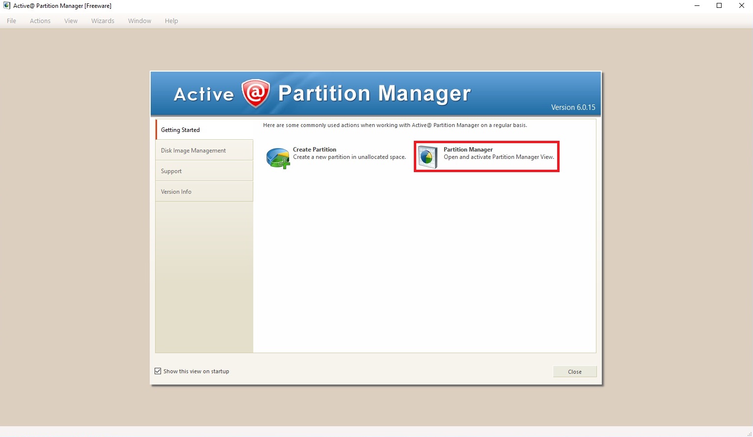 Click at “Partition Manager”.