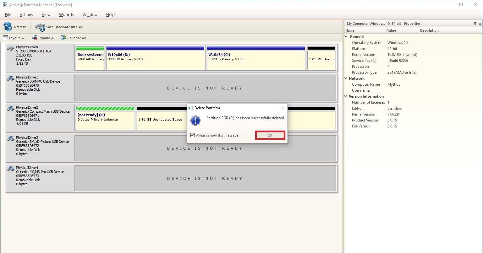 Press “OK” and close Active Partition Manager.