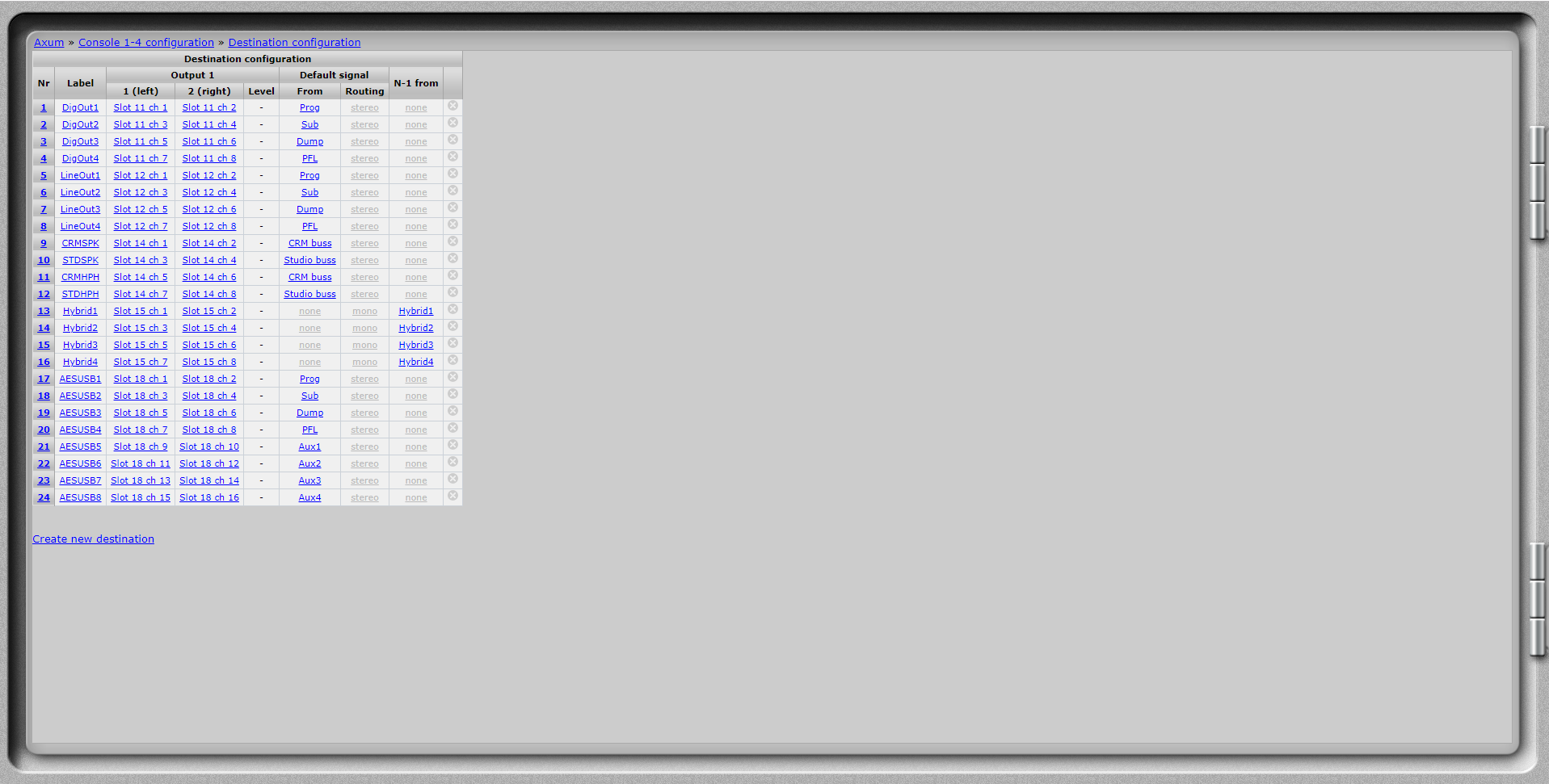 First configure the outputs of the “AES67/USB card”.