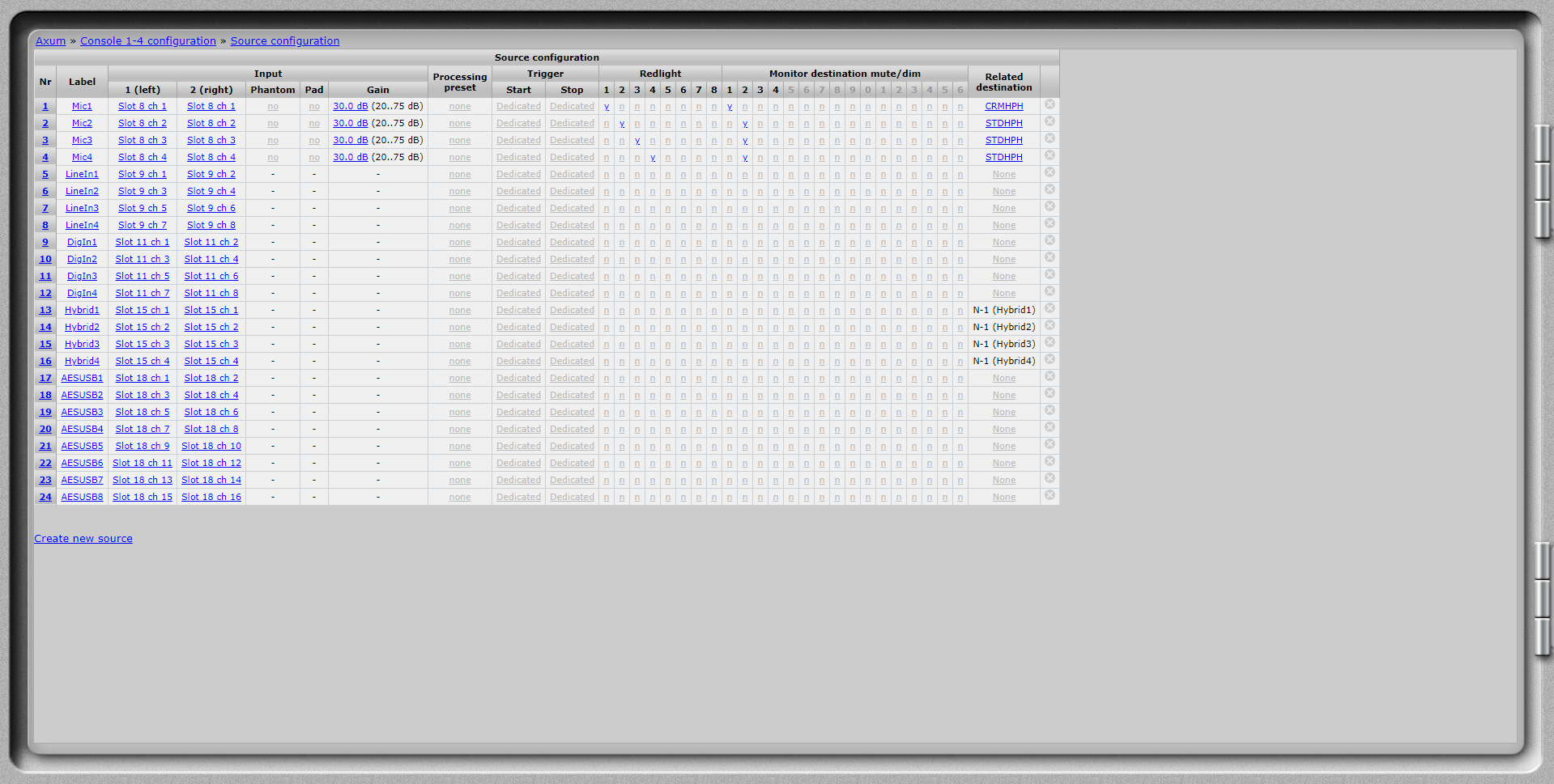 Then configure the Inputs of the “AES67/USB card”.