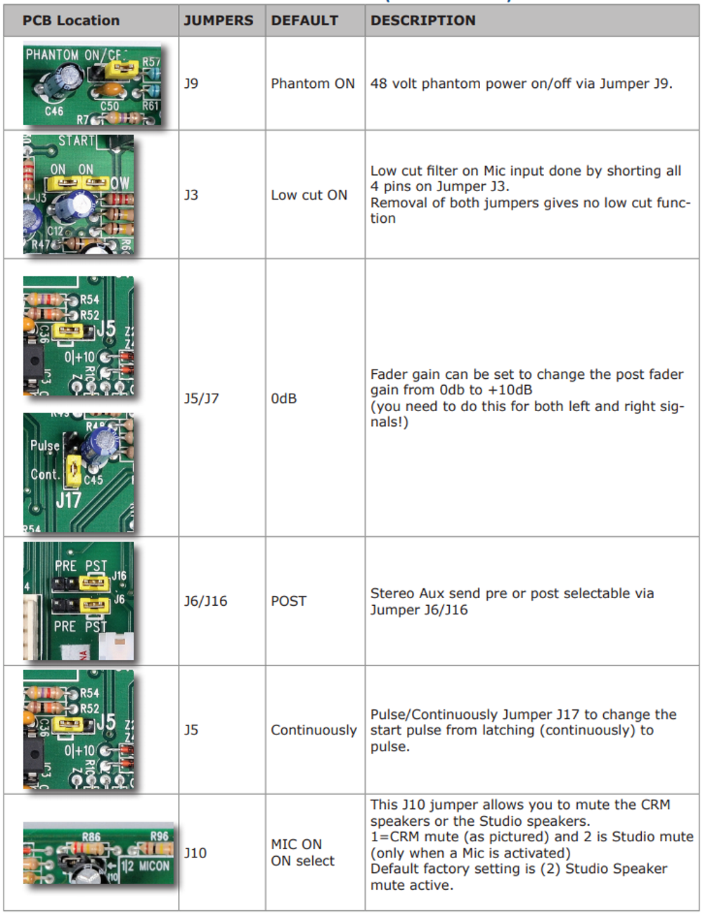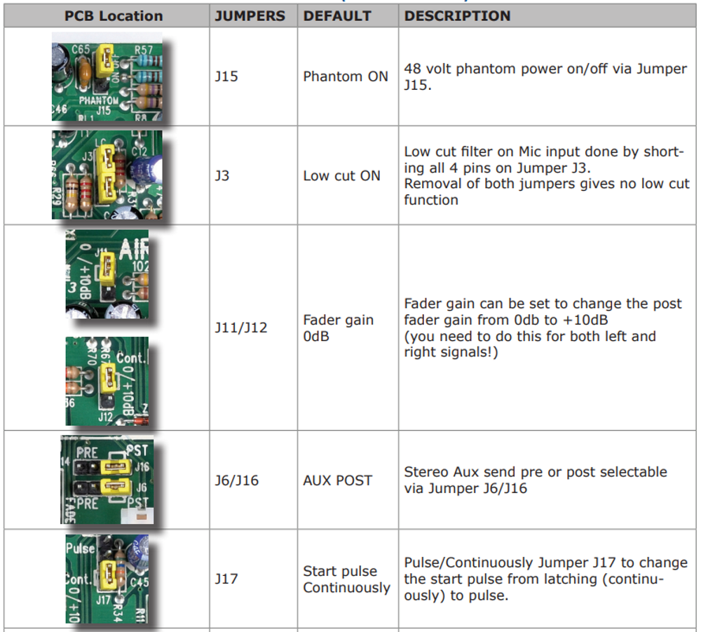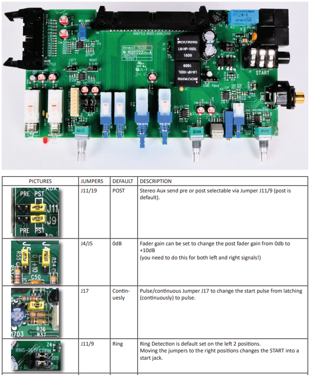 At the Airence Telco channel you can set the Fader start from Continious to Pulse by changing Jumper J17.