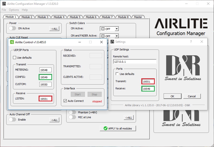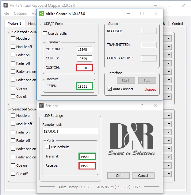 Keep in mind that the Remote host should be the local host 127.0.0.1 or when sharing data with a secong pc the ip address of the computer where the mixer is connected to.