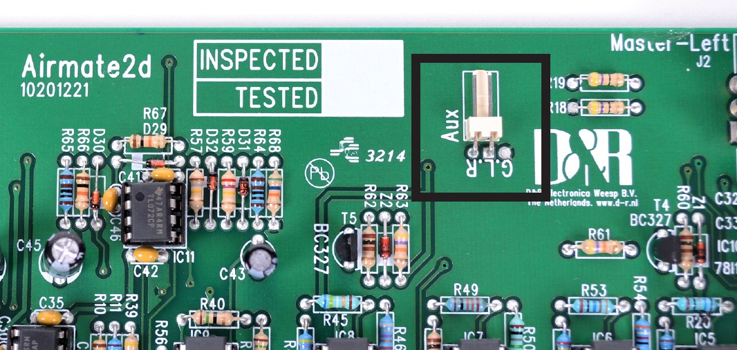 On the Master 2 (Left) PCB you'll find 2 resistors next to the Auxilary send RCA connector.